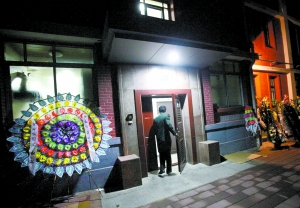 夜色還未褪盡,記者來到位于航天橋航天大院內(nèi)的錢學森靈堂外。位于一層的靈堂此時已是燈影幢幢,單元門外擺放的花籃、花圈并沒有被撤走,依舊簇擁著守候在靈堂門外。