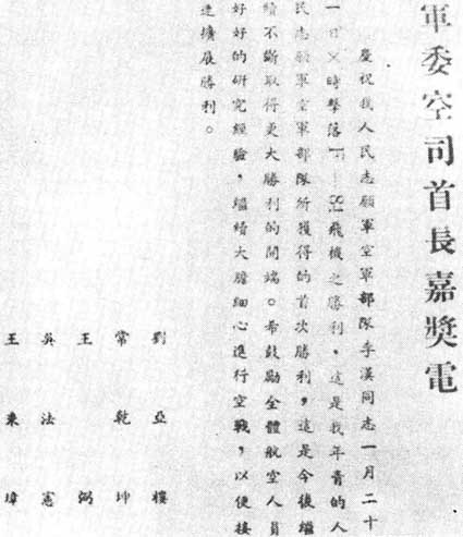 這一勝利,標(biāo)志著人民空軍在戰(zhàn)斗中成長(zhǎng)的道路上邁出了可喜的一步,也為人民空軍的戰(zhàn)史寫下了光榮的第一頁。 (白丁)(素材由空軍政治部宣傳部提供,新華軍事整理)