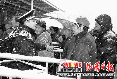 11月10日,一場暴雪給出行的人們帶來了不便。太原交警支隊迅速啟動冰、雪、霧惡劣天氣應急預案,全警動員,全員上路,保障人們的出行安全。在大南門崗,太原市公安局副局長、交警支隊支隊長尹喜平在大雪中疏導著,并不時地喊話,提醒大家注意安全。杏花嶺交警大隊對轄區(qū)太原市東客站和太原市客運汽車公司駐站管理。古交交警大隊在三岔口和神堂巖執(zhí)勤點及早安排警力,實施交通管制……(記者曹秀娟)