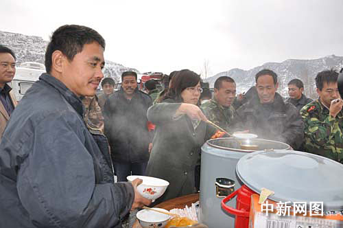 中新網(wǎng)11月15日電 (高增平 趙曉平 王君 )大雪封路,造成忻黑線一些路段車輛滯留。山西呂梁興縣縣委、縣政府及時啟動應(yīng)急預(yù)案,迅速出擊,切實為民解憂,為滯留車輛送關(guān)心、送溫暖,保障受困人員有熱飯吃,有開水喝,能穿暖,不受凍。
