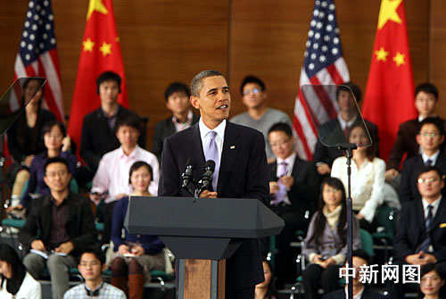 11月16日,美國總統(tǒng)奧巴馬在上?萍拣^與中國青年進行對話,復(fù)旦大學校長楊玉良主持此次對話活動。