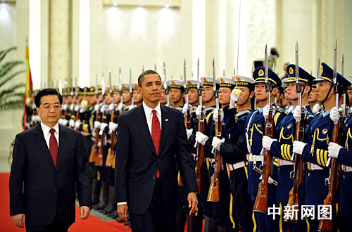 會(huì)談開始前,胡錦濤在人民大會(huì)堂北大廳為奧巴馬舉行了歡迎儀式。會(huì)談后,兩位元首將共同會(huì)見數(shù)百名中外記者。