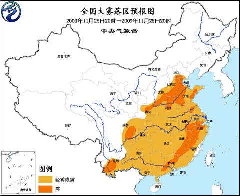 中央氣象臺(tái)25日18時(shí)發(fā)布大霧橙色警報(bào):
