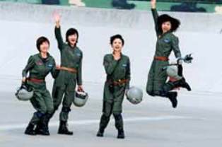 10月1日上午,盡管首都北京上空陽光明媚,但殲擊機女飛行員駐訓(xùn)的華北某機場,云底高500米、云頂高1200米,能見度只有1.3公里。這種情形下能不能按時起飛,既是意志的考驗,也是生死的考驗。她們以忠誠無畏的戰(zhàn)斗決心,迅速確定了長僚機組500米跟進起飛集合方案,梯隊飛機56秒內(nèi)一次全部升空。梯隊飛到1200-1300米高度,一直在兩個云層的夾縫中飛行,直到通州上空氣象條件好轉(zhuǎn)后才穿出云層。到達(dá)天安門廣場上空時,面臨氣流較大、自重較輕的教練機嚴(yán)重顛簸的情況,姑娘們以良好的心理素質(zhì)和過硬的飛行技術(shù),保持了隊形和精度,秒米不差地通過人民英雄紀(jì)念碑上空。