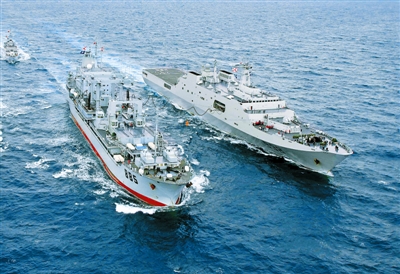 南海某海域,兩艘小山般的戰(zhàn)艦靠近、靠近,波濤在兩艦之間翻滾咆哮……海軍排水量近2萬(wàn)噸的“昆侖山”兩棲船塢登陸艦與排水量3萬(wàn)多噸的“青海湖”綜合補(bǔ)給艦,日前在南海深處成功實(shí)施橫向補(bǔ)給演練。