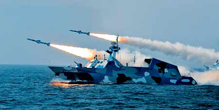 新裝初戰(zhàn),人民海軍演練向縱深發(fā)展。 (特約記者 王松岐 攝)