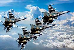 戰(zhàn)鷹列陣,展現(xiàn)人民空軍勢不可擋的威武氣勢。 (特約記者 賁道春 攝)