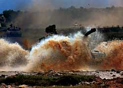 秋冬之交,各軍兵種按新大綱施訓(xùn)進(jìn)入高潮,實(shí)戰(zhàn)化、模擬化、基地化訓(xùn)練扎實(shí)開展,復(fù)雜電磁環(huán)境下訓(xùn)練迅速普及。被冠之以“xx—2009”代號(hào)的實(shí)兵演習(xí)此起彼伏,波瀾壯闊。北京軍區(qū)某旅探索現(xiàn)代城市進(jìn)攻作戰(zhàn),鐵甲部隊(duì)突入街衢樓宇;成都戰(zhàn)區(qū)探索陸空聯(lián)合戰(zhàn)術(shù)兵團(tuán)訓(xùn)練,空地一體鑄就“合璧雙劍”;南京軍區(qū)紅方加強(qiáng)裝甲旅快速機(jī)動(dòng),靈活向前;北海艦隊(duì)“海上狙擊手”劈波斬浪,在復(fù)雜海況中主動(dòng)出擊;濟(jì)南軍區(qū)某紅軍師在“無形天網(wǎng)”中闖關(guān)奪隘,晝夜激戰(zhàn)……