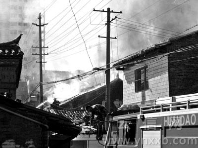 10日,曲靖市老城區(qū)一四合院起火,12間民房被燒,曲靖市消防支隊(duì)所有中隊(duì)出動(dòng),奮力撲救兩小時(shí)。市長(zhǎng)岳躍生趕赴現(xiàn)場(chǎng)指揮。所幸無(wú)人員傷亡。