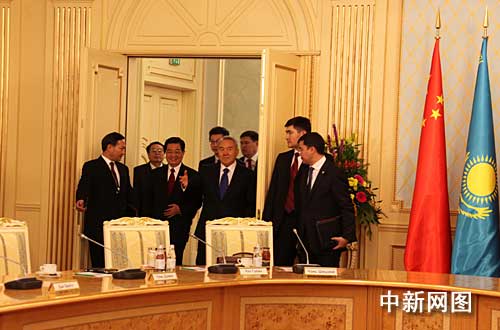 “在會(huì)談中,我向納扎爾巴耶夫總統(tǒng)提出了進(jìn)一步發(fā)展中哈關(guān)系的五點(diǎn)建議。”胡錦濤說(shuō)。