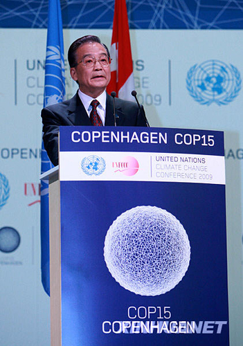 此時此刻,全世界幾十億人都在注視著哥本哈根。我們在此表達的意愿和做出的承諾,應(yīng)當有利于推動人類應(yīng)對氣候變化的歷史進程。站在這個講壇上,我深感責任重大。