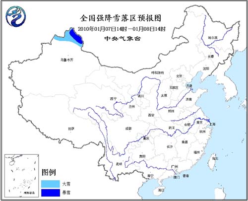 中新網(wǎng)1月7日電 中央氣象臺7日10時(shí)繼續(xù)發(fā)布暴雪橙色警報(bào): 預(yù)計(jì)今天下午到明天中午,新疆北部偏北地區(qū)有大雪(5~9毫米),局部地區(qū)有暴雪(10~15毫米)。