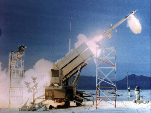 “愛(ài)國(guó)者”先進(jìn)性能-3(PAC-3)導(dǎo)彈防御系統(tǒng)是由美國(guó)早期的“愛(ài)國(guó)者”導(dǎo)彈防御系統(tǒng)發(fā)展而來(lái)的,它是目前最新型的系統(tǒng)。它的特點(diǎn)是:火力強(qiáng)-能夠?qū)癸柡涂找u,搜索速度高,跟蹤能力強(qiáng),反應(yīng)時(shí)間短,可以實(shí)施多個(gè)同步攻擊;能有效地對(duì)抗現(xiàn)有的電子攻擊;能夠與其他的陸軍系統(tǒng)和聯(lián)合系統(tǒng)互操作!皭(ài)國(guó)者”-3導(dǎo)彈配置新的預(yù)警雷達(dá)具有360度全向掃描能力,最遠(yuǎn)探測(cè)距離達(dá)400公里,這使它具有引導(dǎo)其他中遠(yuǎn)程精確制導(dǎo)武器進(jìn)攻的能力。它能同時(shí)捕捉和攔擊多個(gè)低雷達(dá)截面目標(biāo),攻擊飛機(jī)目標(biāo)射程超過(guò)100公里,攻擊導(dǎo)彈射程可達(dá)50公里。它采用直接撞擊方式來(lái)阻擊敵方導(dǎo)彈,可順利引爆對(duì)方彈頭!皭(ài)國(guó)者”-3型每具發(fā)射架可裝置16枚導(dǎo)彈,連續(xù)攻擊力很強(qiáng)。