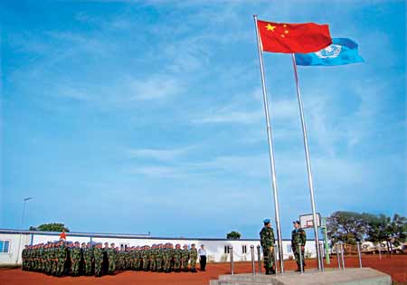 期間,張勇團結(jié)帶領官兵創(chuàng)造了一項又一項紀錄:在任務區(qū)部署時間最長,應對突發(fā)事件最多,執(zhí)行長途運輸任務歷程最遠,受聯(lián)合國表彰人數(shù)最多……春節(jié)那天,蘇聯(lián)團為中國維和官兵授予“和平榮譽勛章”。