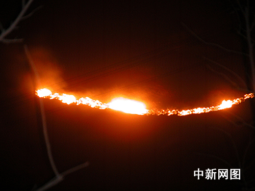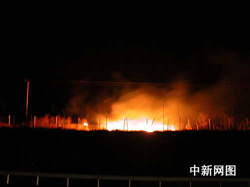 記者于下午5時(shí)30分接報(bào)后,立即向滿城縣官員進(jìn)行了火情通報(bào),并驅(qū)車沿京昆高速滿城收費(fèi)站由北向南了解火情。只見京昆高速路西側(cè)連綿二、三十里的山頂已成了一條火帶。山上枯草、灌木等植被噼里啪啦的燃燒聲不絕于耳,火苗隨風(fēng)力忽大忽小。行進(jìn)至順平境內(nèi),記者未見到山上有明火。
