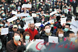 昨日下午1時許,空中不時飄灑著細雨,高明市民劉先生冒雨走在人群中。“我看到有組織者說24日將舉行這個活動,于是我便報了名!庇芯W(wǎng)友在論壇上透露,通過論壇信件等各種方式報名的市民已經(jīng)達到數(shù)百人的規(guī)模。