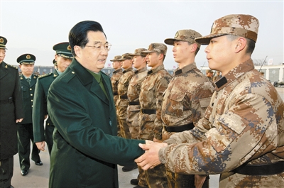 1月的關中大地寒風襲人,軍營里卻暖意融融。正在陜西省考察工作的中共中央總書記、國家主席、中央軍委主席胡錦濤,專程來到蘭州軍區(qū)某部高炮旅視察。