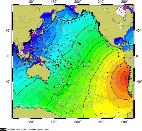 由于此次地震已在智利沿岸引發(fā)了海嘯,位于夏威夷的太平洋海嘯警報中心27日14時46分向智利、秘魯和厄瓜多爾發(fā)布了第一份海嘯警報信息,隨后又將預(yù)警范圍擴大至整個中美洲以及太平洋國家和地區(qū)。智利、秘魯、法屬波利尼西亞 、澳大利亞 、新西蘭 、日本等國已經(jīng)發(fā)布了官方的海嘯警報。俄羅斯、菲律賓等國則表示,將密切監(jiān)視海嘯監(jiān)測數(shù)據(jù)情況,然后決定是否發(fā)布海嘯預(yù)警。