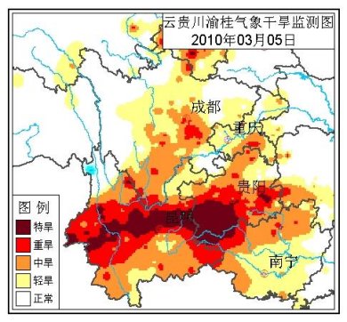 中新網(wǎng)3月5日電 中央氣象臺(tái)3月5日18時(shí)繼續(xù)發(fā)布干旱黃色預(yù)警:根據(jù)3月5日監(jiān)測(cè),云南大部、貴州大部、四川南部和廣西西北部等地維持氣象干旱重旱等級(jí)。預(yù)計(jì),未來三天,除云南西北部和東北部、貴州大部有小到中雨(雪)外,其它旱區(qū)基本無降水。云南大部、貴州西部、四川南部、廣西西部氣象干旱將持續(xù)發(fā)展。