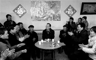 在蘇洪喜的家中,溫家寶向鄉(xiāng)親們介紹了政府的三農工作,懇請鄉(xiāng)親們對政府工作提意見。