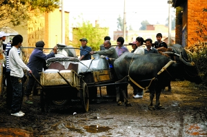 家住河?xùn)|村的朱家付每天趕著牛車,走個把小時來取水。自從打井隊在雙合村口打出水井后,朱家付結(jié)束了每天花兩小時去小壩子村取水的煩惱。他說,“那時候4個人來回6個小時,用桶挑水。”