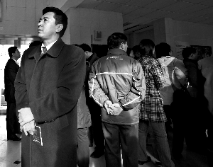 昨日上午8時許,部分記者在辦理旁聽證的窗口排隊(duì)等候,但得到的答復(fù)是:旁聽證已發(fā)完。
