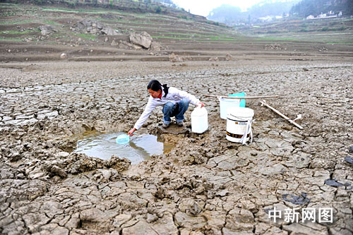 中新網(wǎng)貴陽(yáng)3月24日電 題:貴州開(kāi)陽(yáng)縣干旱災(zāi)區(qū)見(jiàn)聞:飲用水源庫(kù)底水族成“化石”