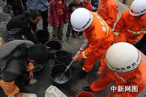 在貴州受旱最嚴(yán)重的黔西南州,已經(jīng)240多日無雨可降。從今年農(nóng)歷新年起,興義市所在的黔西南布依族苗族自治州消防官兵就開始為當(dāng)?shù)厥芎掂l(xiāng)鎮(zhèn)送水。截止3月27日,他們共出動(dòng)消防車輛360輛次,行程10000多公里,為當(dāng)?shù)?04個(gè)行政村送水2280多噸,解決了20萬人次的生活飲水困難。