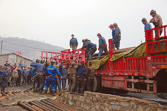 在救援現(xiàn)場(chǎng)記者看到,大批搶險(xiǎn)物資已經(jīng)運(yùn)抵煤礦風(fēng)井口等待投入使用,搶險(xiǎn)隊(duì)員正緊張地從車(chē)上卸下水泵、管道、電纜等設(shè)施并進(jìn)行安裝,40多名醫(yī)護(hù)人員和20多輛救護(hù)車(chē)現(xiàn)場(chǎng)待命,指揮部工作人員一次又一次論證救援方案、修正正在實(shí)施的救援措施。