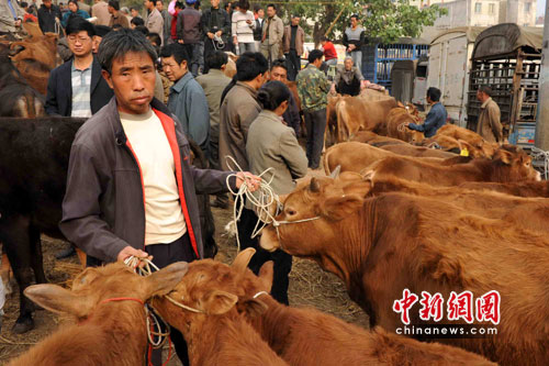 秦大章夫婦看上了馮元達(dá)一頭不到兩歲的小牛,“沒換牙齒、蹄也不錯(cuò)!鼻卮笳潞軆(nèi)行的告訴記者。在此后近30分鐘的時(shí)間里,一場(chǎng)在2300元至1900元人民幣之間的價(jià)錢拉鋸戰(zhàn)進(jìn)行起來。最終,在周邊人的撮合下,秦大章以2010元的價(jià)錢買到了他看上的小牛。