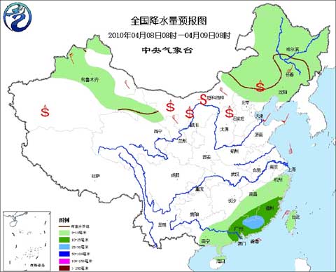 5日入侵我國(guó)的冷空氣南下之后,與南方暖濕氣流配合,并給南方大部送去了大量降雨。從3月28日至4月7日十天的全國(guó)降水量實(shí)況圖來(lái)看,江南、華南大部降水非常多,特別是湖南、江西、福建等省部分地區(qū),累計(jì)雨量在100-200毫米之間。