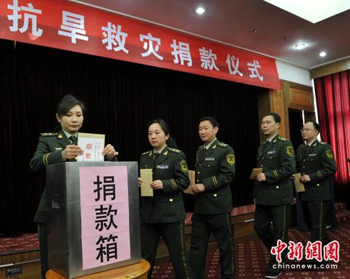 在今天舉行的現(xiàn)場(chǎng)捐贈(zèng)儀式中,貴州消防總隊(duì)機(jī)關(guān)全體官兵現(xiàn)場(chǎng)捐款3.7萬余元。據(jù)統(tǒng)計(jì),自抗旱以來,貴州各地消防官兵先后捐款捐物35萬余元,抗旱送水?dāng)?shù)56320噸,澆灌農(nóng)作物1000余畝,惠及群眾近300萬人。完