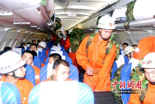 目前,南航的第一架救援包機已于16時30分滿載著157名公安消防部隊官兵、2.2噸生命探測儀等設備,從廣州白云機場起飛,飛赴青海西寧機場。據(jù)執(zhí)行此次航班的南航廣州飛行部A320機隊副經(jīng)理朱文學、副駕駛張漫綠機組介紹,目前除廣州地區(qū)有雷雨天氣外,航路天氣情況良好,如果正常飛行,飛機將在三個小時內(nèi)抵達災區(qū)機場。