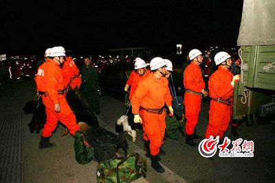 4月14日,地震發(fā)生后,省公安消防總隊立即成立應急救援指揮部。按照公安部消防局統(tǒng)一指揮和調度,總隊迅速調集了191名搶險救援攻堅隊員,于今天凌晨分兩批開赴震區(qū)。0: 30, 129 人在濟南機場乘山航 SC901專機起飛;與此同時,62 人在青島機場乘專機起飛。兩專機將直飛西寧,會合后立刻趕往玉樹縣增援。