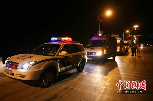 4月15日21:10左右,車隊(duì)在翻越5000多米的海子山時(shí),四川省人民醫(yī)院一臺(tái)奔馳救護(hù)車發(fā)生爆胎,經(jīng)過40多分鐘的緊急搶修,故障排除。眼看就要抵達(dá)石渠縣城了,車隊(duì)中再次傳來一聲“砰”的響聲,車隊(duì)中又有車胎發(fā)生爆胎。車隊(duì)不得不停下。