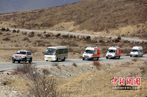 4月16日凌晨4:30分左右,車隊(duì)終于抵達(dá)四川最遠(yuǎn)的縣城石渠縣,休整半小時(shí)后,車隊(duì)出發(fā)離開四川趕往青海省玉樹。經(jīng)過1200余公里,40小時(shí)的長(zhǎng)途跋涉,醫(yī)療救援車隊(duì)終于在16日早晨7時(shí)左右平安抵達(dá)青海省玉樹地震重災(zāi)區(qū)。