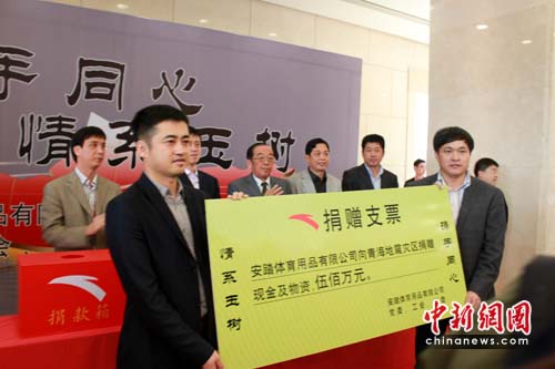 中新網(wǎng)晉江4月19日電(孫虹)19日,安踏體育用品有限公司透過晉江慈善總會向青海玉樹地震災(zāi)區(qū)捐贈200萬元現(xiàn)金與價值300萬的賑災(zāi)物資,共計500萬元人民幣。