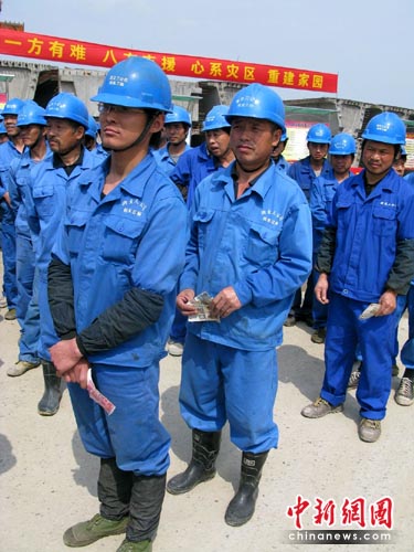 在募捐現(xiàn)場(chǎng),記者看到一名身穿藍(lán)色工作服的民工張師傅,他的手里拿著10張5元錢正排隊(duì)等著捐款。他說,錢不多,但他們的心和在前線救援的工作人員一樣,希望能夠幫助災(zāi)區(qū)群眾盡快重建家園。