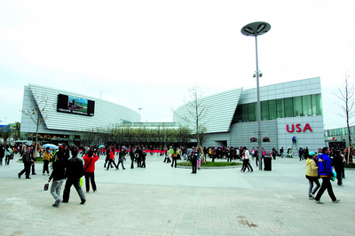 美國館外墻那“飛流而下”的瀑布媒體墻,讓人想起芝加哥著名的皇冠噴泉。正如皇冠噴泉所強(qiáng)調(diào)的,美國不是一張臉。美國是許多不同的臉。這些臉中,有兩“黑臉”中國人都挺熟:一個是總統(tǒng)奧巴馬,一個是NBA球星科比·布萊恩。這兩人的臉,排在一堆普通美國人的臉中間。進(jìn)入展館,參觀者會受到來自美國人的歡迎—— 包括奧巴馬、科比—— 笑著竭盡全力用普通話重復(fù)“歡迎來到美國館”。