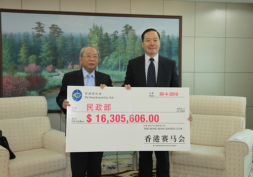 中新網(wǎng)4月30日電 據(jù)民政部網(wǎng)站消息,4月30日,香港賽馬會(huì)為青海玉樹地震災(zāi)區(qū)捐款1630.5606萬港幣儀式在民政部舉行。羅平飛副部長(zhǎng)會(huì)見了專程來京出席捐款儀式的香港賽馬會(huì)主席陳祖澤先生一行,對(duì)香港賽馬會(huì)多年來關(guān)注內(nèi)地慈善事業(yè)發(fā)展,積極參與玉樹災(zāi)后重建的義舉表示贊賞和感謝。