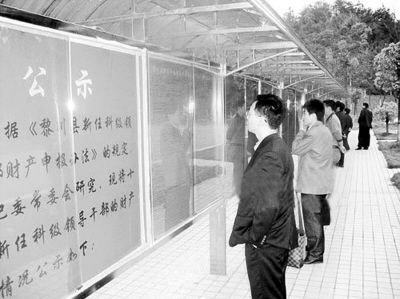 面對(duì)張貼在縣城廣場(chǎng)的領(lǐng)導(dǎo)干部財(cái)產(chǎn)公示表,江西省黎川縣一名71歲的退休干部發(fā)出了這樣的感嘆。醞釀5個(gè)月后,黎川縣紀(jì)委于近日正式出臺(tái)《新任科級(jí)干部財(cái)產(chǎn)申報(bào)辦法(試行)》,申報(bào)范圍包括工資獎(jiǎng)金、住房、私車、存款和貸款情況、名人字畫(huà)等12項(xiàng)內(nèi)容。19名新任科級(jí)干部都向老百姓曬出“家底”。