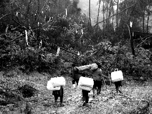 救災(zāi)階段,除鎮(zhèn)上、縣里下來的工作人員外,記者看見,整個(gè)災(zāi)區(qū)很少見20歲—50歲之間的青壯年男勞力。