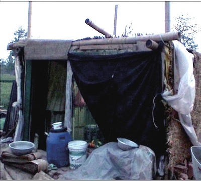 在廣平縣城郊的焦莊村,有一個用竹子、草簾和塑料布搭成的不足10平方米的窩棚,女主人名叫李運(yùn)得,她與丈夫擠住在這里,孩子借住在別人家。