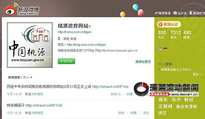 桃源縣在去年11月2日首次開通新浪微博開始了政府網(wǎng)絡(luò)問政的嘗試,為湖南省乃至全國第一家政府微博。在開通的半年多時間里,“桃源微博”經(jīng)歷了由政績發(fā)布平臺到注重桃源風土人情宣傳、注重與網(wǎng)友互動的改變。雖然是湖南省內(nèi)、國內(nèi)首個政府微博,桃源縣政府的微博卻不夠搶眼,“桃源微博”極少出現(xiàn)在公眾視野中,甚至一度被云南微博搶去“首個政府微博”稱號。