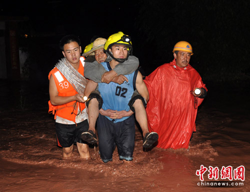 險(xiǎn)情發(fā)生后,四川涼山消防支隊(duì)迅速啟動(dòng)抗洪救災(zāi)應(yīng)急救援預(yù)案,支隊(duì)司令部參謀長(zhǎng)余培榮率領(lǐng)消防官兵于22:15分趕到,現(xiàn)場(chǎng)洪水已淹沒了村莊內(nèi)的全部進(jìn)出通道,村民近五分之四的房屋全部進(jìn)水,由于村莊內(nèi)大部分房屋均為土木結(jié)構(gòu)建筑,部分土墻經(jīng)不住洪流的浸泡已出現(xiàn)局部垮塌,一些群眾被困家中無法逃生。