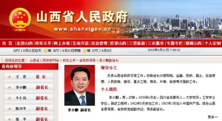 據(jù)山西省人民政府網(wǎng)站“省政府領(lǐng)導(dǎo)”欄目顯示,日前,李小鵬同志任山西省政府黨組副書(shū)記、常務(wù)副省長(zhǎng)職務(wù)。