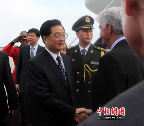 在機場發(fā)表的書面講話中,胡錦濤首先表示,很高興再次來到美麗富饒的“楓葉之國”加拿大進行國事訪問。