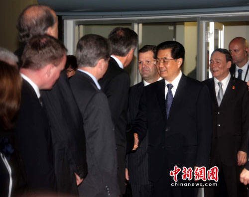 中新網(wǎng)多倫多6月26日電 (記者 張朔 賴海隆)當(dāng)?shù)貢r間6月26日上午,多倫多飄起細雨。正在加拿大訪問的中國國家主席胡錦濤乘車來到位于多倫多市以北的龐巴迪飛機制造廠參觀。