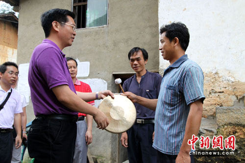 在聽取許多村民的建議后,當(dāng)?shù)毓俜經(jīng)Q定按照村民的意愿,采用比較原始的方法,為全縣每個村屯配發(fā)一面銅鑼,每個村屯指定一名地質(zhì)災(zāi)害防御信息員,由縣財政發(fā)放310元工作補貼。信息員平時對本屯的地質(zhì)情況進(jìn)行檢查監(jiān)測,發(fā)現(xiàn)情況立即通知居民撤離到安全地帶,并上報國土和相關(guān)部門,在緊急情況下,信息員采取敲鑼的方式通知居民立即撤離到指定的地點。