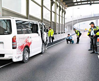 中新網(wǎng)1月4日電 香港《星島日報》今日在頭條刊發(fā)報道稱,香港沙田大圍大埔公路3日發(fā)生恐怖分尸車禍。一名準新郎為賺錢結(jié)婚,日做20小時,3日晨駕駛客貨車開工,疑過勞打瞌睡,客貨車失控連續(xù)猛撼隔音屏石臺及鐵欄,共狂奔500米,準新郎疑未扣安全帶被拋飛車外,身體被車身及鐵欄夾成兩截,當場喪生。